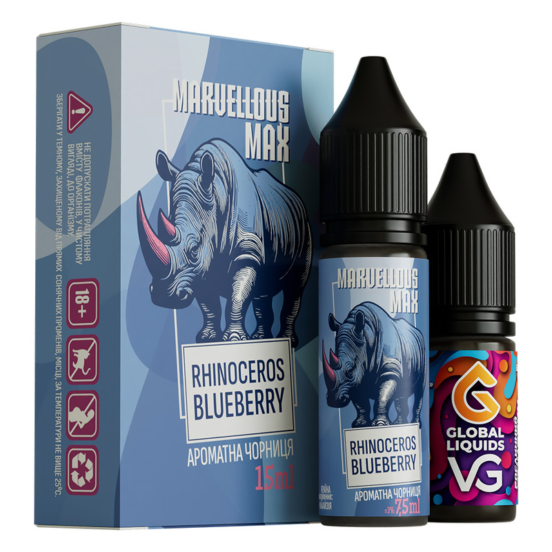 Marvellous Max Rhinoceros Blueberry, 15 мл - це ідеальний вибір для тих, хто цінує своє здоров'я та хоче насолоджуватися вейпінгом безпечно та якісно.