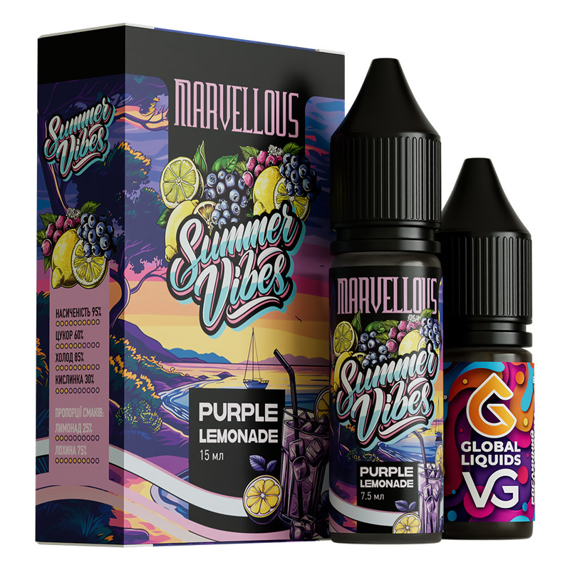 Замовте набір Marvellous Summer Purple Lemonade, 15 мл прямо зараз і зануртесь у світ свіжості та яскравого смаку. Насолоджуйтесь кожним вдихом разом з нами!