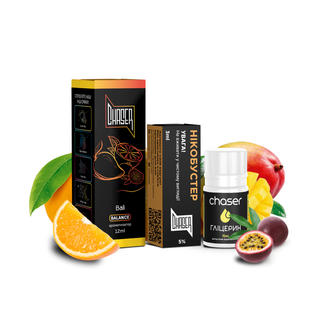 Не містить шкідливих речовин і ідеально підходить для тих, хто дбає про своє здоров'я. Вибирайте набір Chaser Black 30мл 50мг BALI і насолоджуйтесь якісним паром кожен день!