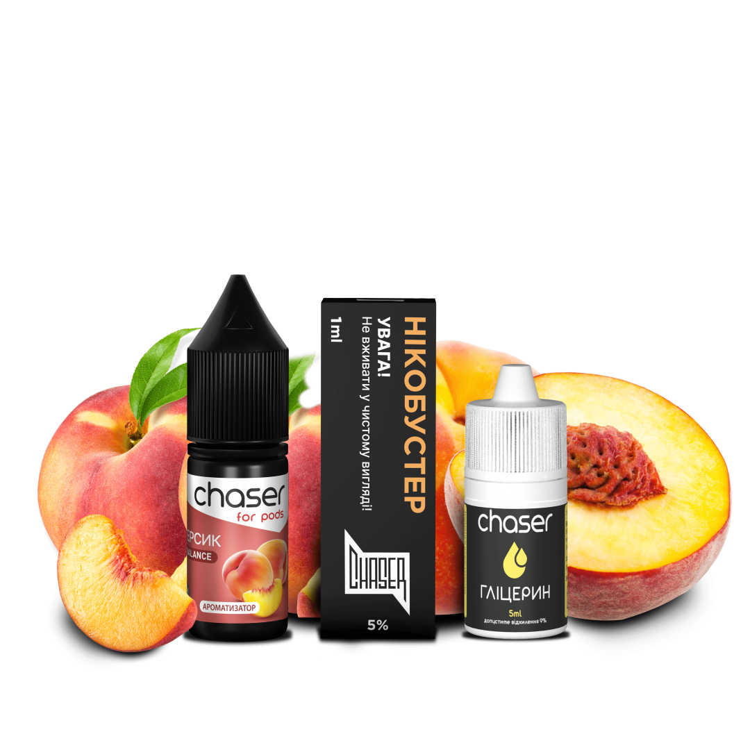 Набір Chaser For Pods ПЕРСИК - це ідеальне рішення для любителів використання Pod-систем і солевих рідин. Цей набір містить рідину з натуральним смаком персика, який є одним з найпопулярніших у світі вейпінгу.