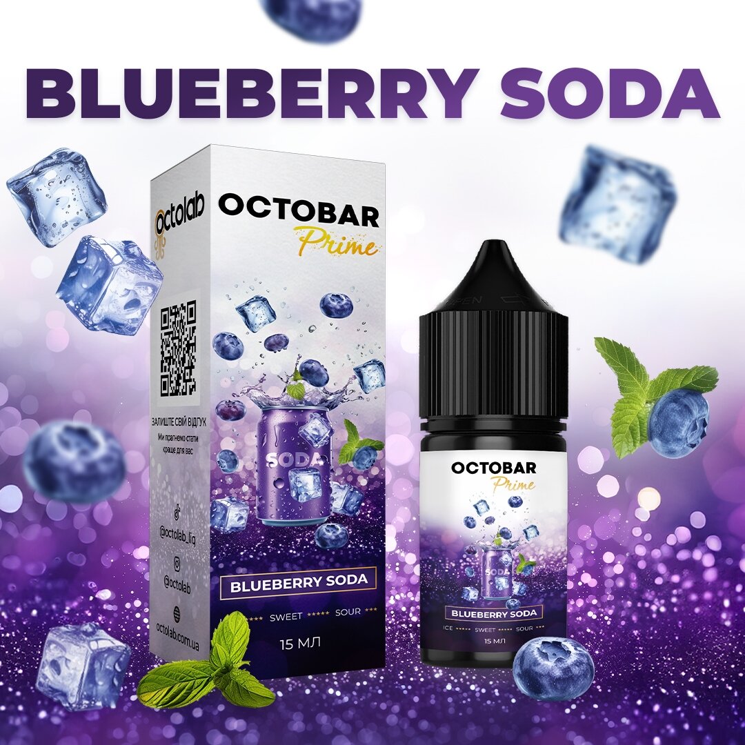 Не упустіть можливість насолодитися неповторним ароматом чорниці та свіжості газованої води з набором Octobar PRIME Blueberry Soda. Проведіть час з задоволенням та новими емоціями!